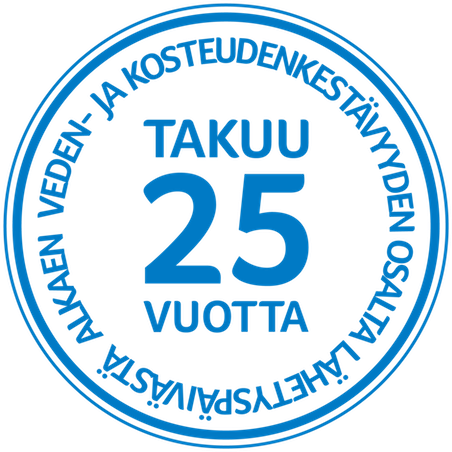 Myönnämme kaikille tuotteillemme normaalissa käytössä kahden vuoden takuun lähetyspäivästä alkaen sekä veden- ja kosteudenkestävyyden osalta LAMI-ovilevyille ja -karmeille (lukuunottamatta varusteita) normaalissa käytössä 25 vuoden takuun lähetyspäivästä alkaen.