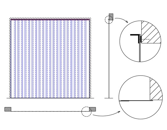 LAMI-liuskeverhojen kiinteät ripustusrakenteet tehdään alumiiniprofiileista. Verhojen asennus toteutetaan joko seinä- tai kattokiinnityksenä.